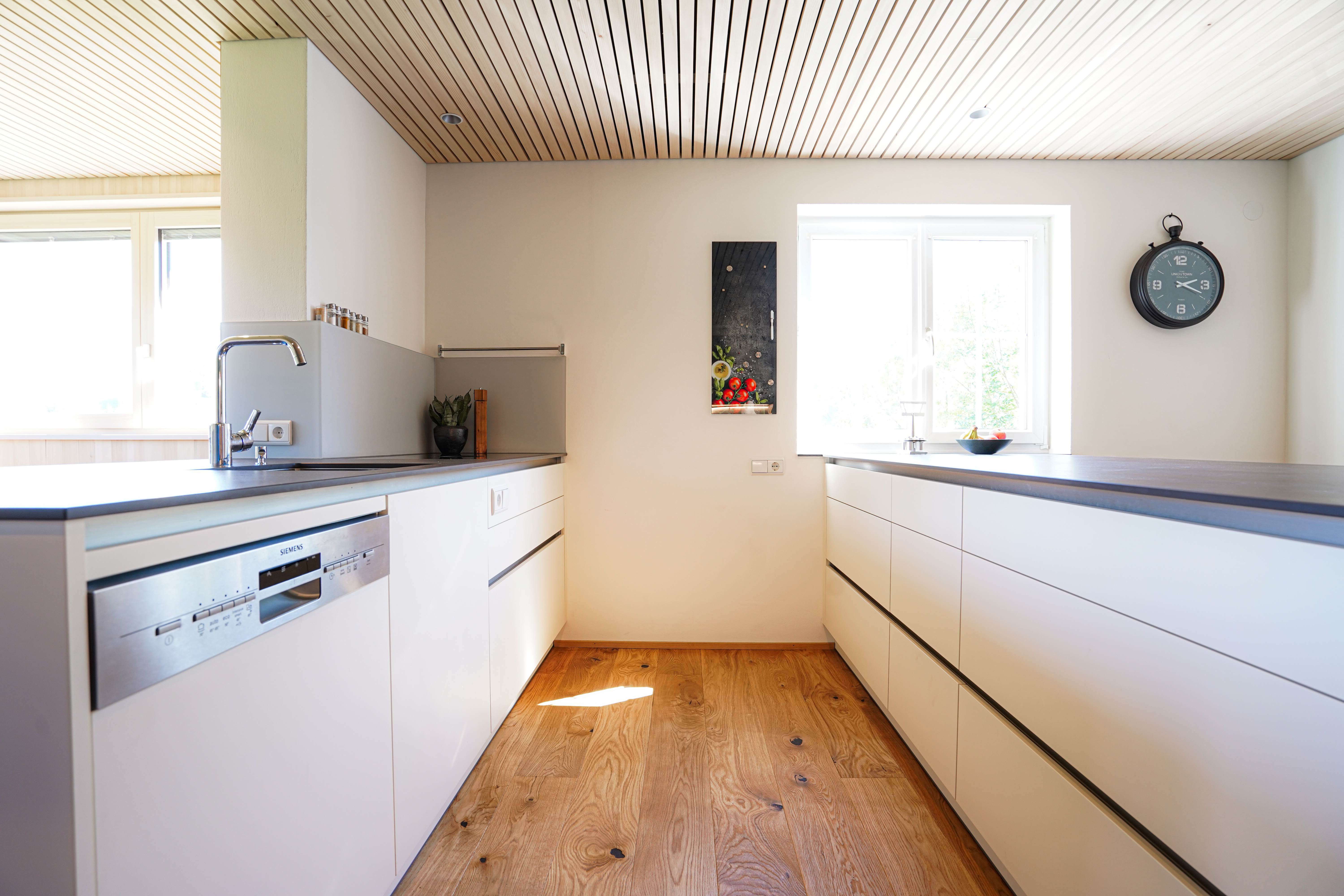 Schon unsere prähistorischen Vorfahren versammelten sich um das Kochfeuer und auch heute noch spielt die Küche eine zentrale Rolle: für den ersten Kaffee am Morgen, für gemütliches Zusammensitzen, für die Zubereitung von Snacks oder großen Menüs. Entsprechend viel Aufmerksamkeit sollten Sie ihr bei der Wahl der Einrichtung widmen. Moderne Küchen bieten eine enorme Vielfalt an stilistischen Varianten – in allen Farben, hochglanzlackiert, rustikal oder modern mit auffälligen Farbeffekten. Die Rückwand kann aus Glas oder aus dem gleichen Material wie die Arbeitsfläche bestehen. Wir führen Küchen in erster Linie von EWE, FM und Regina.