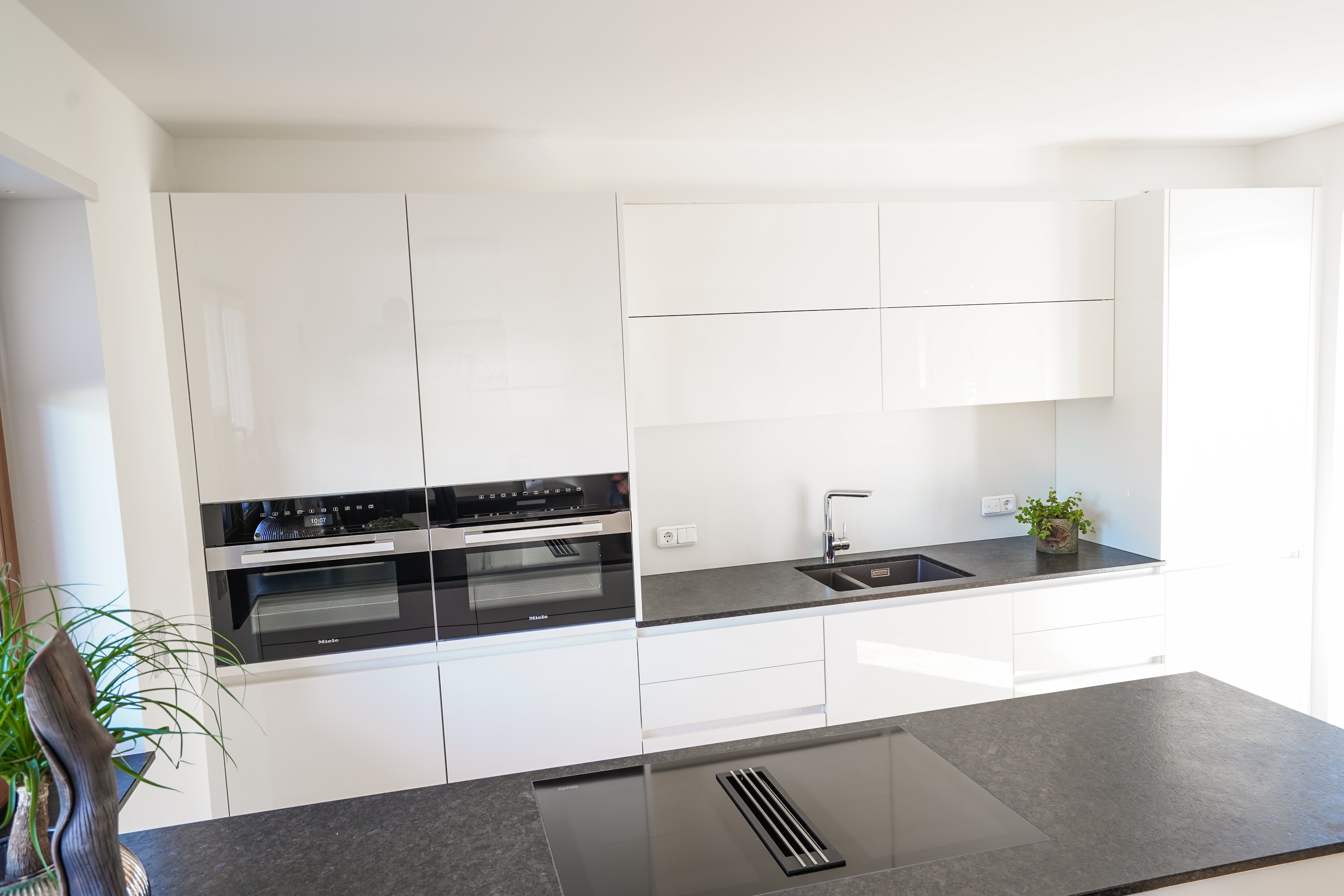 Eine Küche sollte sorgfältig geplant werden, da sie manchmal für Jahrzehnte unverändert bleibt. Wir besprechen mit Ihnen, wo Sie welchen Schrank und welche Ablagemöglichkeit haben möchten, ob die Spülmaschine rechts oder links vom Spülbecken sein soll. Ebenso wählen Sie sämtliche Elektrogeräte bei uns aus.
